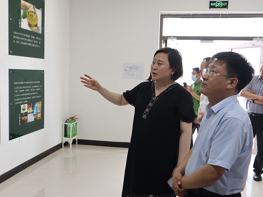 公司董事長張之一陪同蔡井偉副部長一行參觀了俏牌火麻仁加工生產線,并詳細介紹了俏牌火麻系列產品的生產能力、技術裝備優(yōu)勢及在國際市場占有的領先地位。蔡副部長對俏牌公司利用專利技術優(yōu)勢拓展下游產業(yè)鏈,對火麻種植業(yè)、火麻產品加工業(yè)等起到的拉動作用給予了充分的肯定。 |